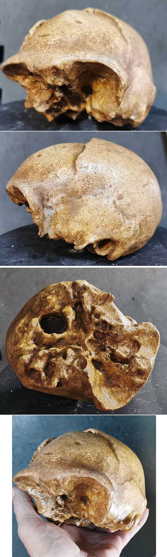 Moulage, en bioplastique et résine, grandeur nature, d'un crâne d'homo